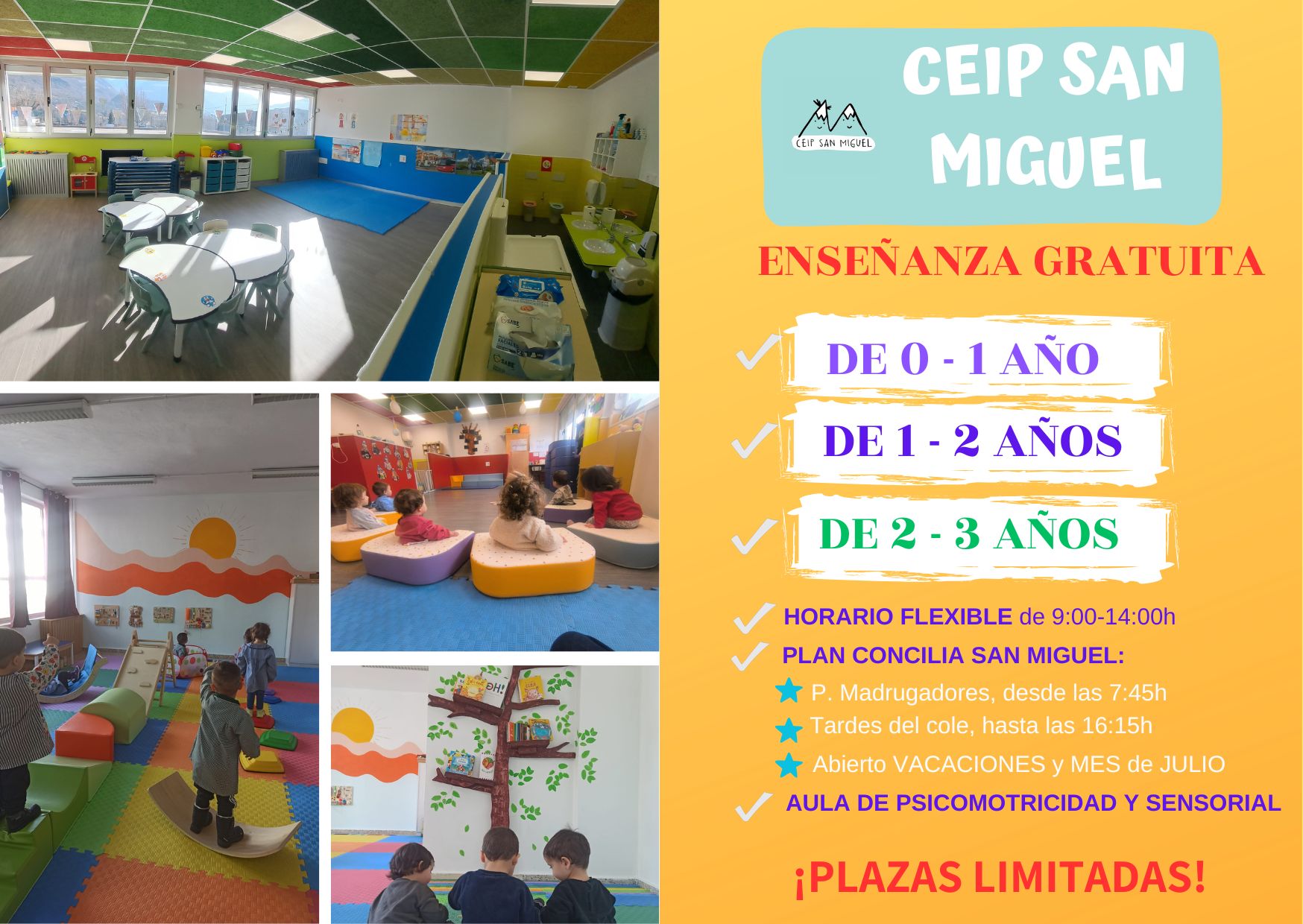 En el CEIP San Miguel,contamos con TRES AULAS específicas para 1º ciclo de Educación Infantil, separadas por edades.